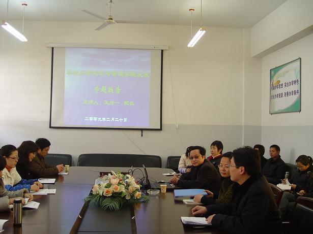 在N4-312会议室召开了第一次全体教职工教研活动。会议由院党委书记张弢博士主持。院长王为一教授作了《用学校的办学思路指导管理亚洲博彩平台推荐