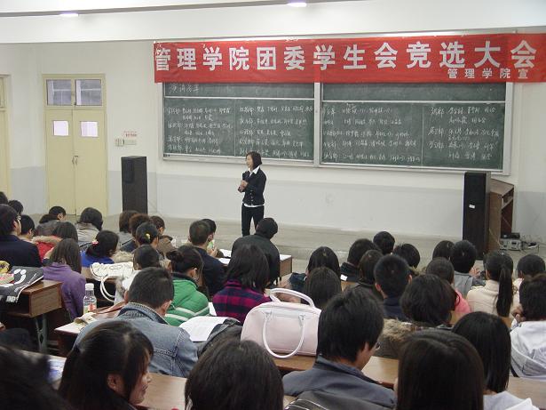 第一届团委学生会竞选大会顺利召开。党委副书记朱艳阳博士和辅导员老师,上一届的全体学生会干部和各班的班长以及普通学生代表出席大会。