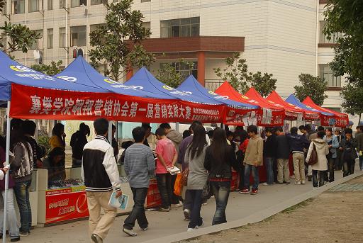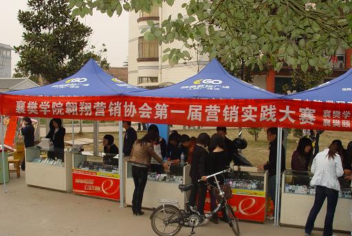 2009年3月19日为期三天的襄樊亚洲博彩平台推荐 翱翔营销协会第一届营销实践大赛在亚洲博彩平台推荐 北区13#楼前和南区致远餐厅前同时举行。