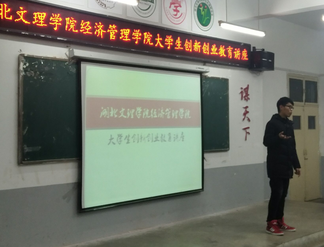 讲座由辅导员王凯旋主持。王老师从树立正确的创业思想、创业者应该具备的知识体系和能力素、如何选择创业项目、怎样处理创业和学业关系等方面与大家进行了交流和分享。随后,创业的学生胡耀伦、李亚菲分享了他们的创业经历,讲述了创业过程中的曲折与喜悦。他们经历了从最初的外卖小哥到开设路边摊再到合伙开办小型餐馆的三次创业失败,然而他们并没有放弃,而是从几次失败的经历中寻找原因,为再次创业积攒经验和人脉,终于他们成立了自己的公司“襄阳州驰信息科技管理有限公司”,开始了创业之路。