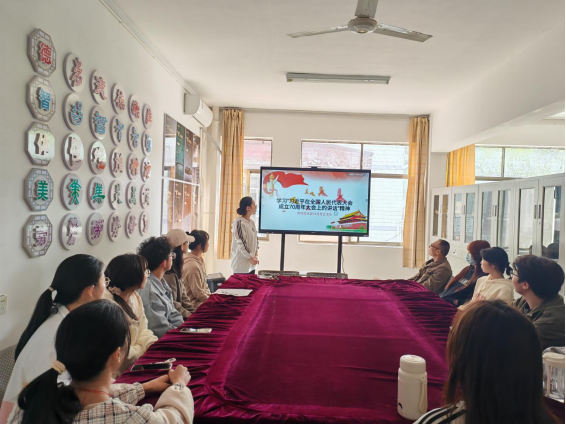 大家集体观看了习近平总书记在庆祝全国人民代表大会成立70周年大会上的重要讲话相关视频,党支部副书记邱文倩通过PPT讲解,带领大家认真学习领会习近平总书记在庆祝全国人民代表大会成立70周年大会上的重要讲话精神,深刻认识实行人民代表大会制度的历史必然和显著政治优势,增强走中国特色社会主义政治发展道路的信心和决心。深刻认识坚持好、完善好、运行好人民代表大会制度的重大原则,坚持以习近平新时代中国特色社会主义思想为指导,坚持党的领导、人民当家作主、依法治国有机统一,深刻领悟“两个确立”的决定性意义,增强“四个意识”、坚定“四个自信”、做到“两个维护”。