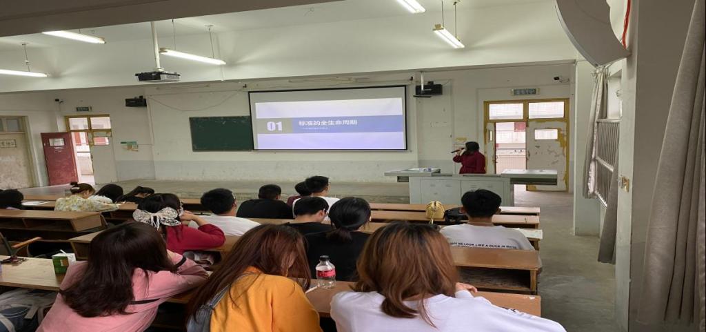 之后,专家肖俊用案例就标准化的来源、标准的制定过程等问题给学生做了具体生动的讲解,并和师生进行了较为深入的讨论。