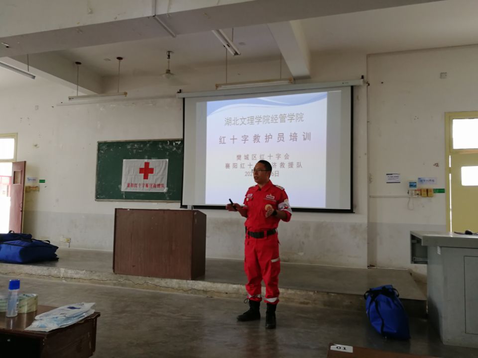 此次培训由樊城区红十字会专业培训老师,依据《中国红十字会救护师资培训教学大纲》,以“理论培训+实践操作+现场考试”的形式教学,向同学们介绍了红十字与红新月运动基本知识及救护新概念;强化心肺复苏方法及AED使用、气道异物梗阻的急救,骨折、出血等创伤救护等核心技术以及常见急症、意外伤害、突发事件的处置要领。